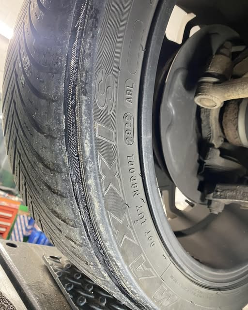 Recently, we had a customer come in for their routine MOT with no idea that their tyres were in extremely poor condition. The photo below shows just how worn they had become. Not only were these tyres well below the legal tread limit, but they posed a serious safety hazard. In conditions like the ones we’re seeing now, tyres in this state can dramatically increase the risk of skidding, aquaplaning, or completely losing control of the vehicle.