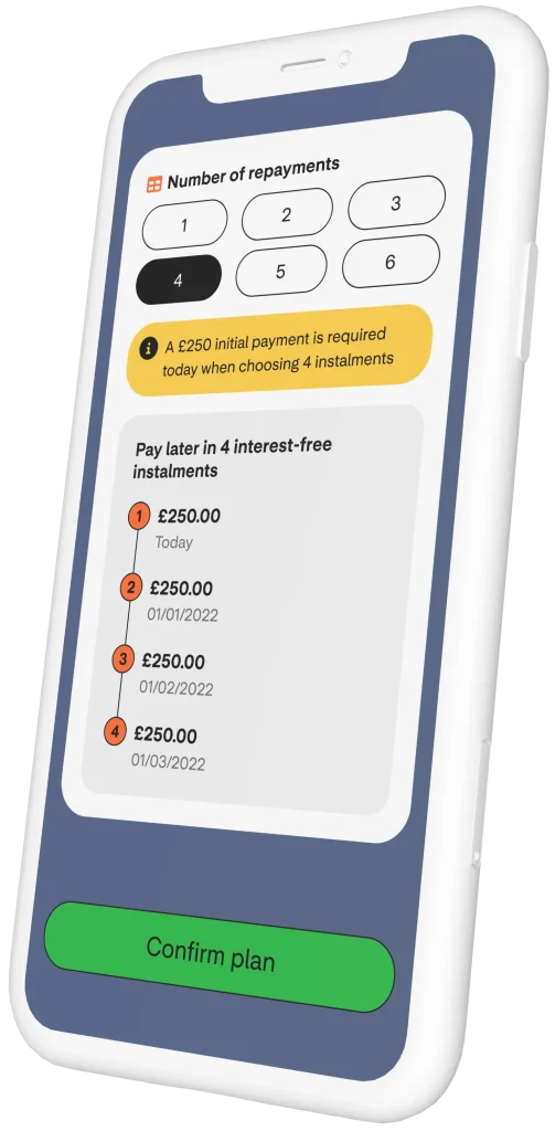 You can pick the number of months you’d like to spread the cost over and choose a repayment date that suits you.